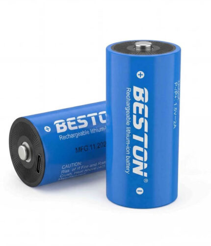 BESTON D Size 7200mWh Rechargeable Lithium-Ion Battery with Type-C Port – 2 Pack