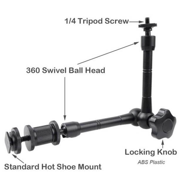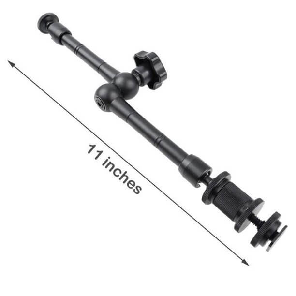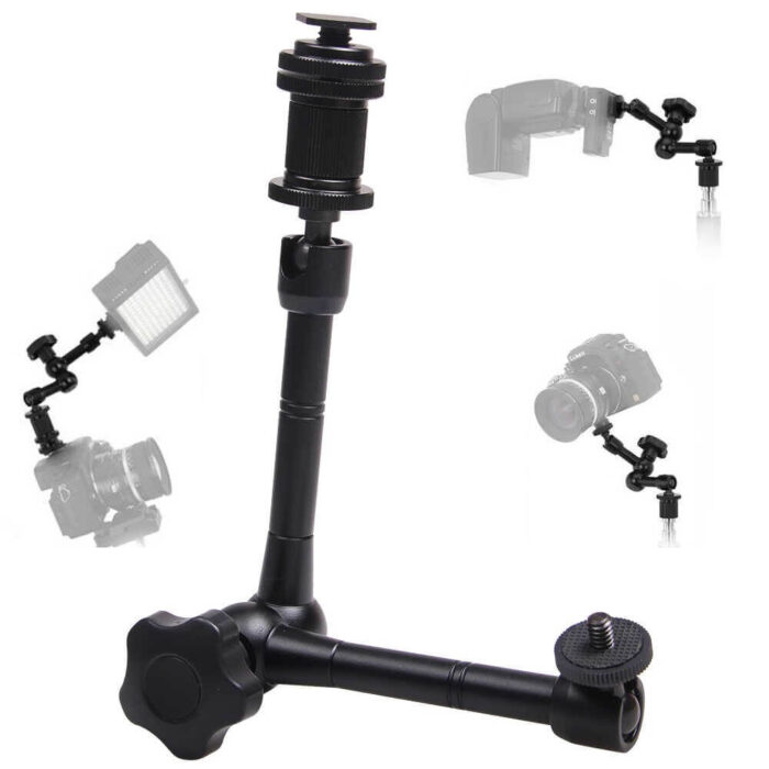 The MA11-069 professional mounting arm is the ideal solution for easily and securely mounting accessories such as LCD monitors, LED lights, or flashes to your camera or rig. Its robust metal construction and full adjustability give you great flexibility to adjust angles and achieve the best shooting setup.