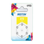 The Beston A10 Zinc Air Hearing Aid Batteries are designed to deliver reliable, long-lasting power for in-canal hearing aids and other small medical devices. Featuring advanced zinc-air technology, these batteries provide high energy density, ensuring clear sound quality with minimal distortion.