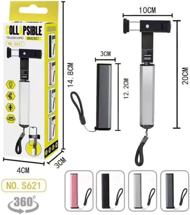 The lightweight and foldable design makes it ideal for travel and outings . It also features an extendable telescopic arm and a rotating head to adjust the shooting angle to your liking.