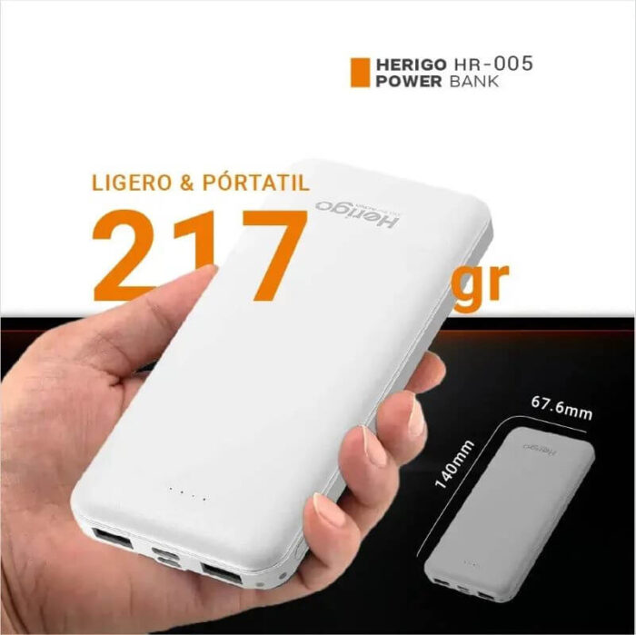The Herigo DBK HR-005 power bank is an ideal choice for everyday use, combining practicality with a simple design. It comes with a 10,000mAh capacity to provide enough power for your phone all day long, and can charge two devices simultaneously via its two USB ports.