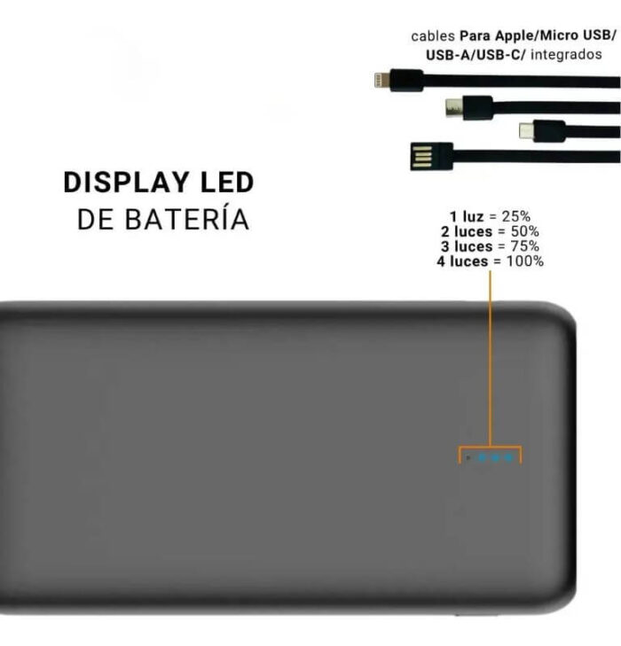4 built-in cables (Type-C, Lightning, Micro, USB)
