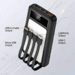 The Herigo HR-014 is a versatile 10000mAh power bank designed for everyday use and outdoor activities. It features 22.5W fast charging, 4 built-in cables (Type-C, Lightning, Micro USB, USB), and a bright LED lamp.