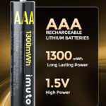 High Capacity & 1.5V Output imuto rechargeable lithium batteries feature a high capacity of 1300mAh and high energy density, allowing for numerous charge and discharge cycles and a long lifespan. They provide a stable 1.5V output throughout the charging process until the battery is completely depleted, keeping your device running at peak performance.