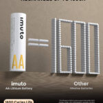 imuto 3600mWh rechargeable lithium AA batteries are designed for high-drain devices, providing longer usage time between charges. (3600mWh ≈ 2400mAh)