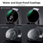 【Guarantee Real Colors】 Adopted 28-Layer multi-resistant coating technology, the green coating on the ND1000 lens filter helps effectively reduce filter surface reflection and the ghosting while making the filter anti-scratch, water repellent, oil and dust resistant.