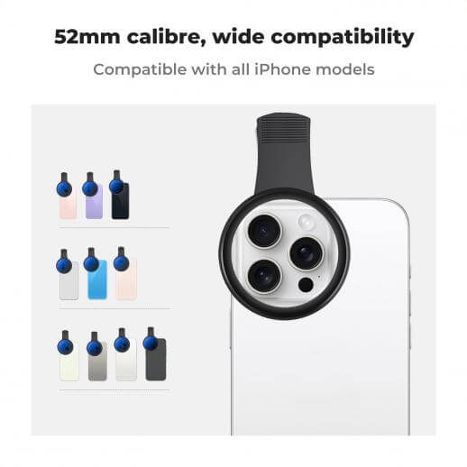 Widely Compatibility The clip can be clamped on most smartphones to take pictures like a professional SLR camera. The 52mm VND filter can also work with the DSLR cameras with ø 52mm lens thread.