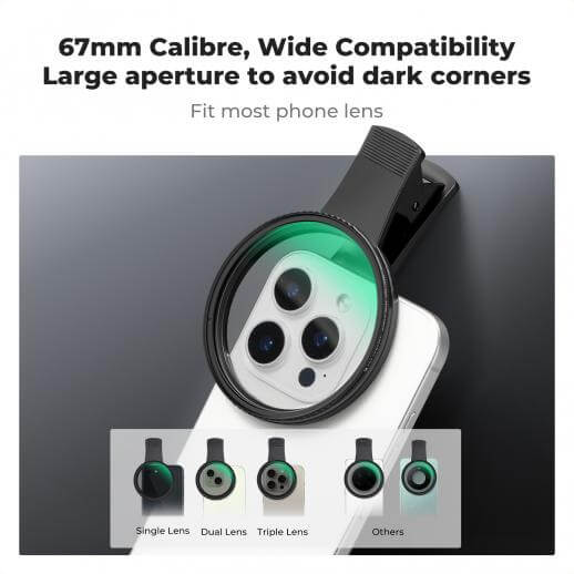 Home » Shop » K&F Concept 67mm Clip-on CPL Phone Camera Lens Filter Kit Applicable to All Mobile Phone Models