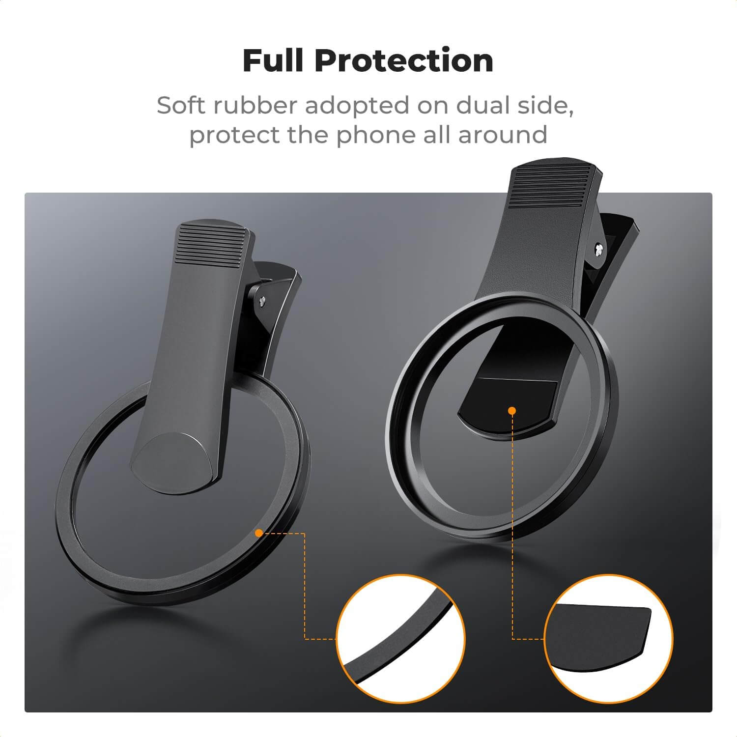 Full Protection: Equipped with soft rubber padding on the clip and adapter ring to prevent scratches and ensure a secure fit.