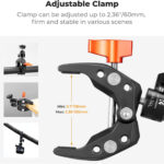 Rich Expansion Ports: The clamp includes numerous 1/4″ expansion holes, allowing for easy integration with various ball heads and accessories. This enables a variety of creative shooting functions and angles to meet different photography needs.