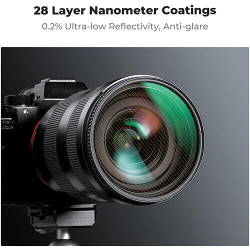 Advanced Anti-Reflection Coating Both sides of the glass with nanometer coatings, a total of 28-layer coating, waterproof and scratch-resistant, effectively reduces surface reflections and ghosting issues, ensuring high-quality and artifact-free images.