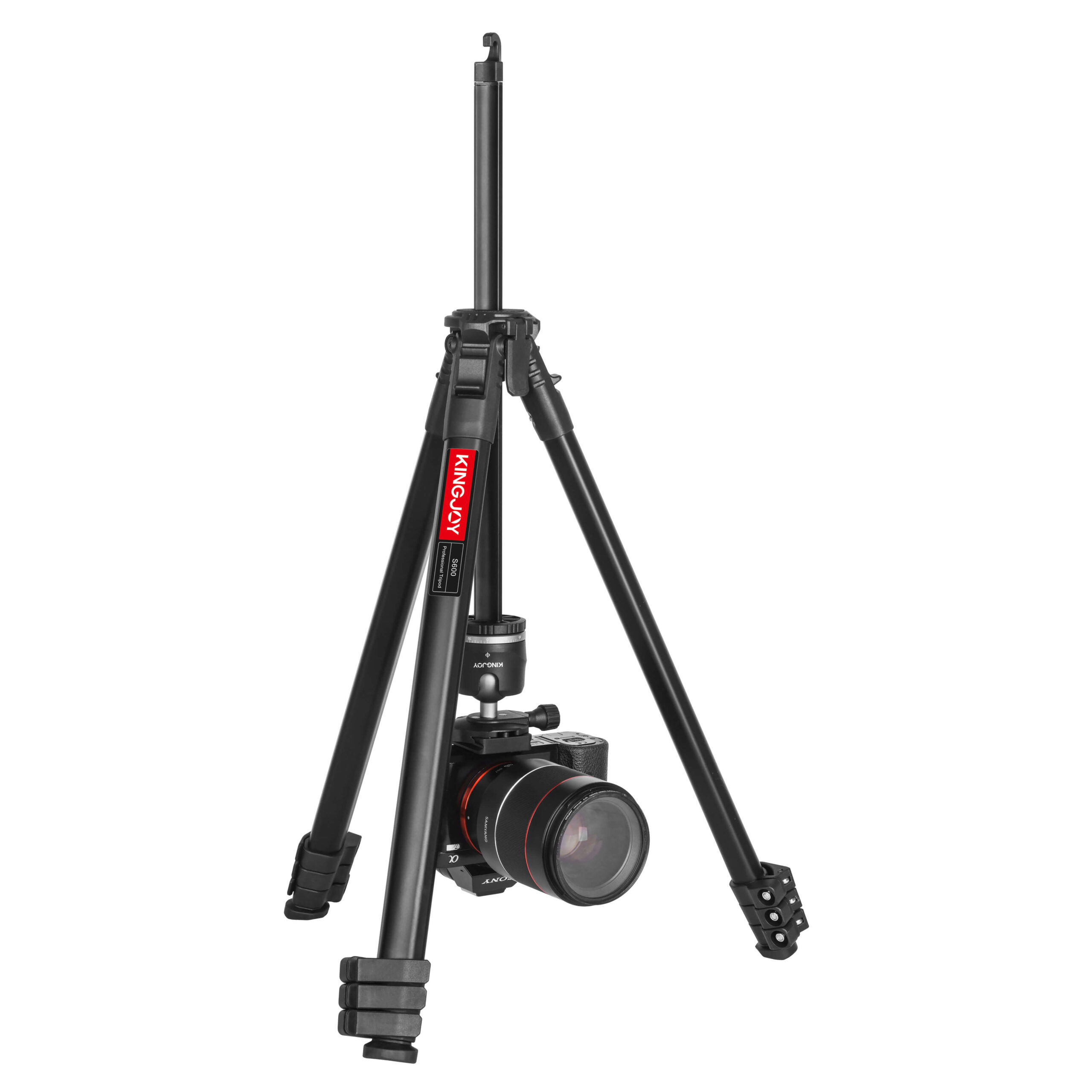 Effortlessly Adjustable Height: With its 4-section tube leg design and quick flip leg lock mechanism, this tripod allows you to effortlessly adjust its working height in seconds. The maximum height without center column reaches 1360mm/53.5in, and the maximum height with center column is 1645mm/64.8in