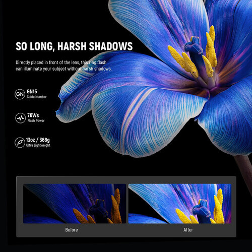 The Neewer RF1-S TTL Macro Ring Flash is a compact, high-performance lighting solution designed for Sony cameras, perfect for macro and close-up photography. Whether you’re shooting portraits, plants, insects, or products, the RF1-S ensures uniform illumination without harsh shadows.