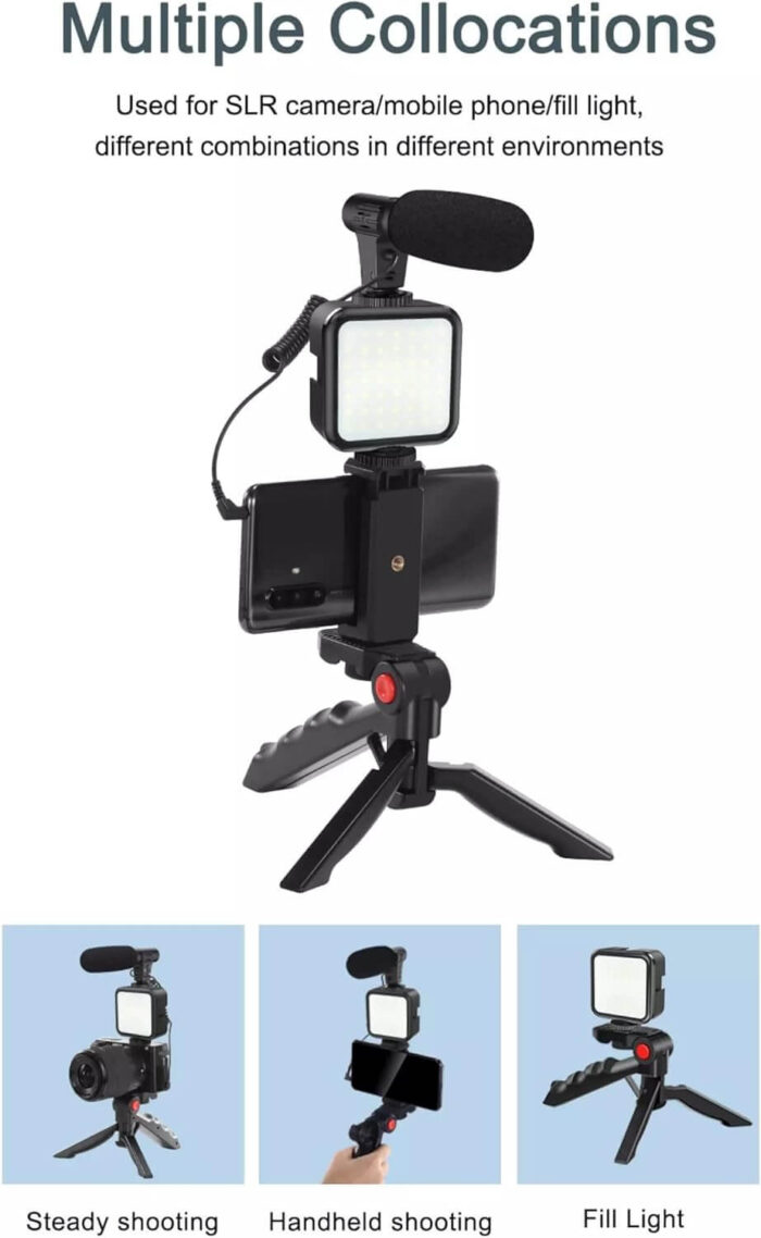 - Complete Vlogging Kit – Includes tripod, microphone, and LED light.